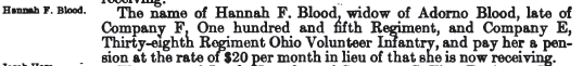 102. Adorno Blood Jr. served in the military, was married to Hannah Odell, and apparently predeceased her. |